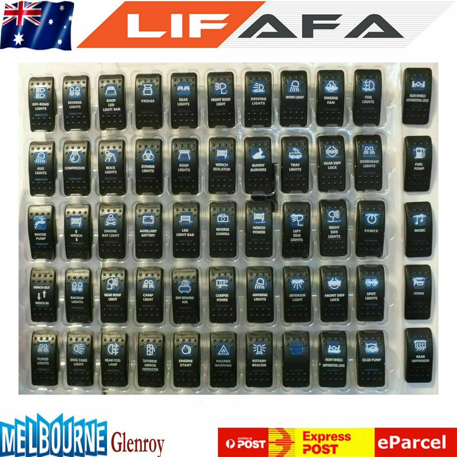 Color: Black LED Light Color: Blue Number of light: 2 led light Dimension: like the picture show Type: SPST Electrical: ON-OFF Pin: 5 DC 12V/20A,24V/10A Suitable for all 12 / 24v car battery installation, such as cars, motorcycles, buses, boats, RVs, boats, trailers, etc. Package Includes:
