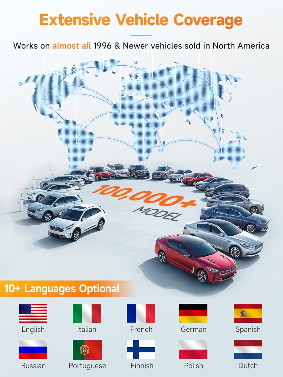 - WIDE COMPATIBILITY – Trusted by YouTube Star Scotty Kilmer. Featured by Scotty Kilmer on his YouTube channel, the AD410 OBD 2 Scanner works on most U.S. vehicles (code reader for cars and trucks) from 1996 and newer. It supports all OBDII protocols, including KWP2000, ISO9141, J1850 VPW, J1850 PWM, and CAN. With multi-language support (English, German, French, Spanish, Finnish, Dutch, Russian, and Portuguese), this car code reader is ideal for international users. NOTE: Check compatibility with your vehicle model before purchasing.
