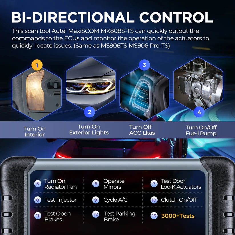Autel MaxiCOM MK808S-TS OBD2 scanner with bidirectional testing, 28 services, 150 brands, TPMS programming