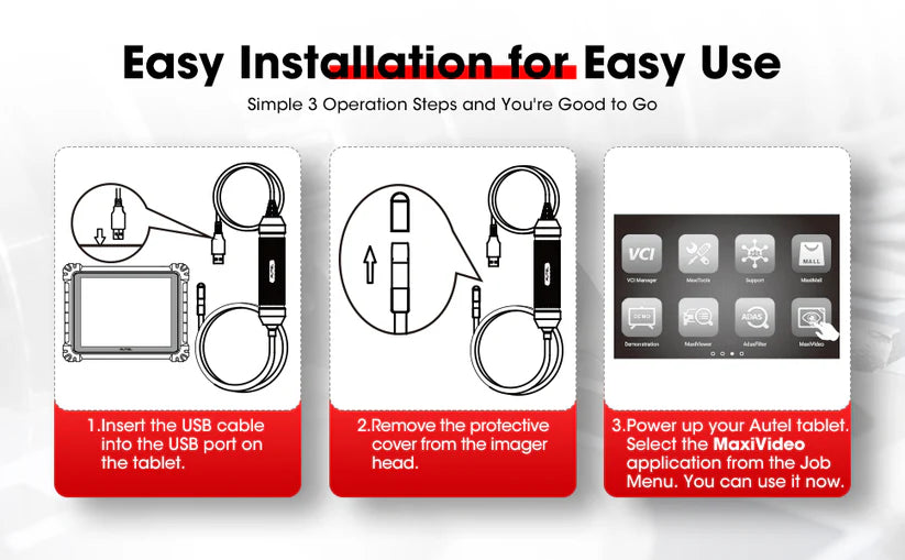 • 【Small Tool, Wide Applications】 Good to have this Autel MaxiVideo inspection endoscope in your car inspection kit. Inspect confined areas to locate problems such as carbon deposits, blockages, wear, broken components... much faster without disassembling them. It can be widely used for inspection in other inaccessible places, such as blocked pipe, wall structure and more.