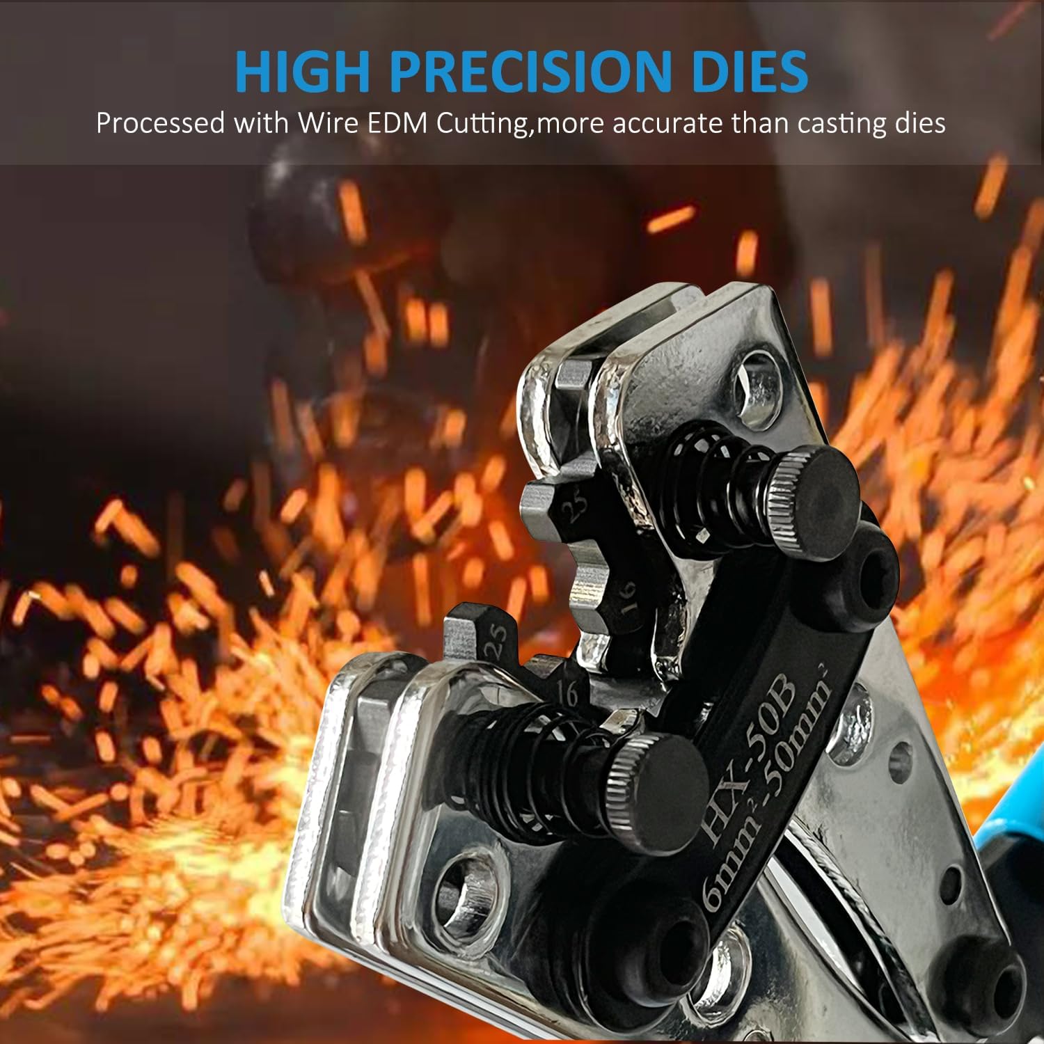 - HIGH RELIABILITY: The jaw is made by EDM wire cutting process for more durability and precision. The crimper body is made of high-quality steel die-casting. They are subjected to a strict quality inspection process before leaving the factory