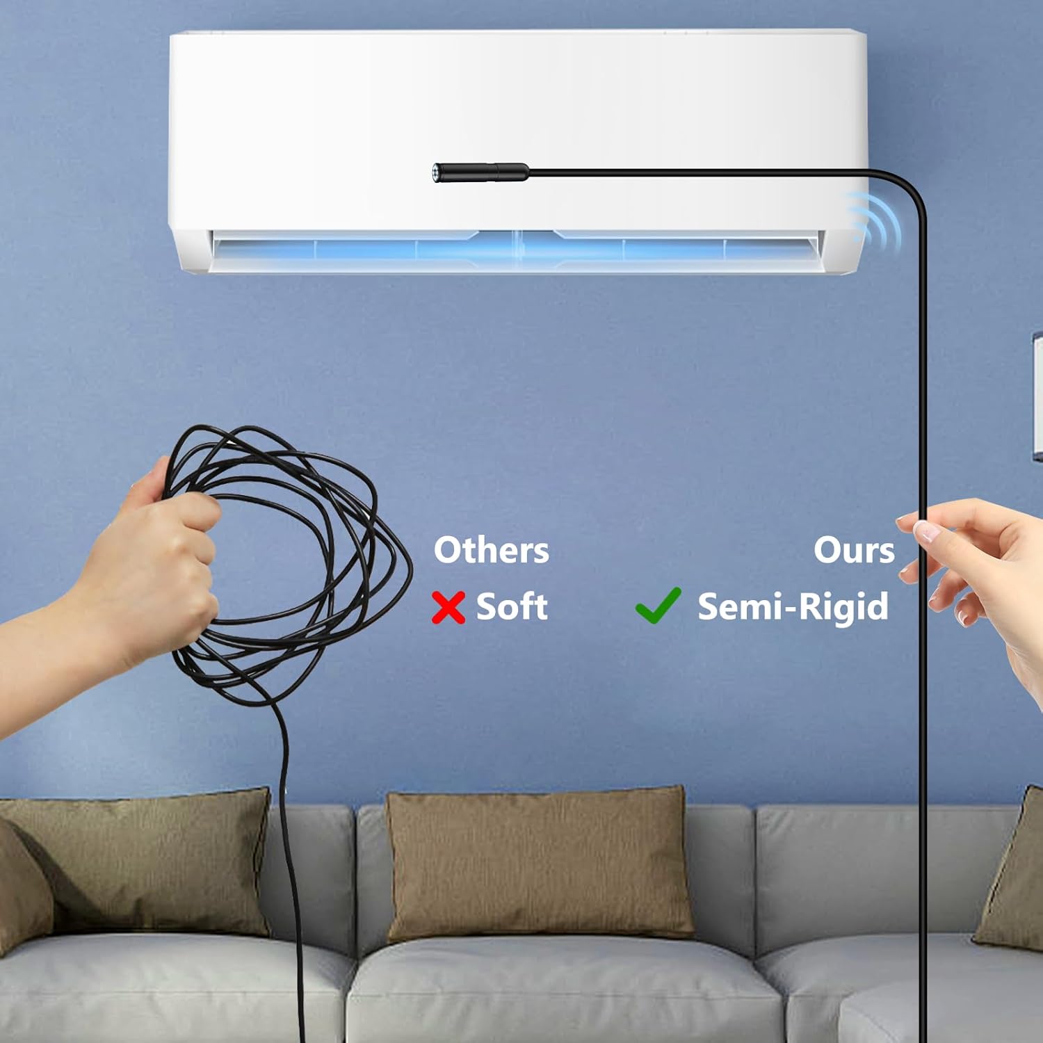 - Semi-rigid and IP67 Waterproof: The sewer camera has a 5-meter-long semi-rigid cable, giving you more convenient control during operation, the snake camera achieves a balance between rigidity and flexibility. The endoscope is IP67 waterproof and can be used as underwater cameras, waterproof mini cameras, car detectors, sewer detectors, etc.