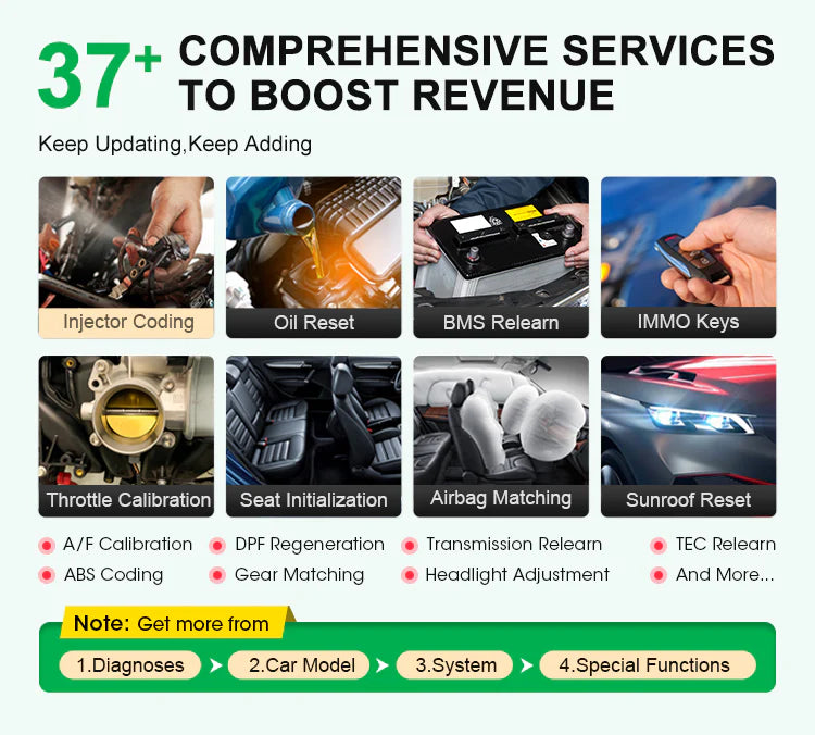 4. Maintenance Services: (41+ reset service, ECU online coding, initialization, V-A-G guided functions, programmable module installation, flash hidden functions, etc.)