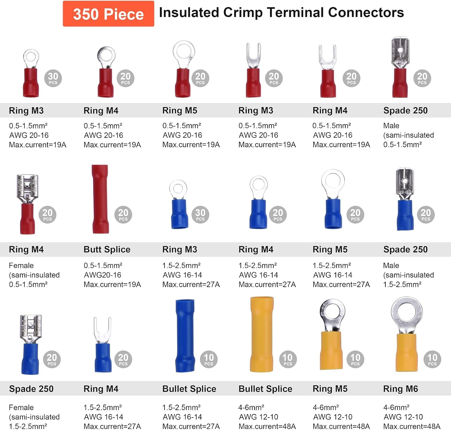 - Widely Adopted: Preciva ratcheting insulated wire terminal crimper are widely used in various electrical circuit maintece, workshops, auto repair electricians, machinery or automobiles, motorcycles, etc. Include: 1*ratcheting wire crimper, 350*connectors, 1* user manual.
