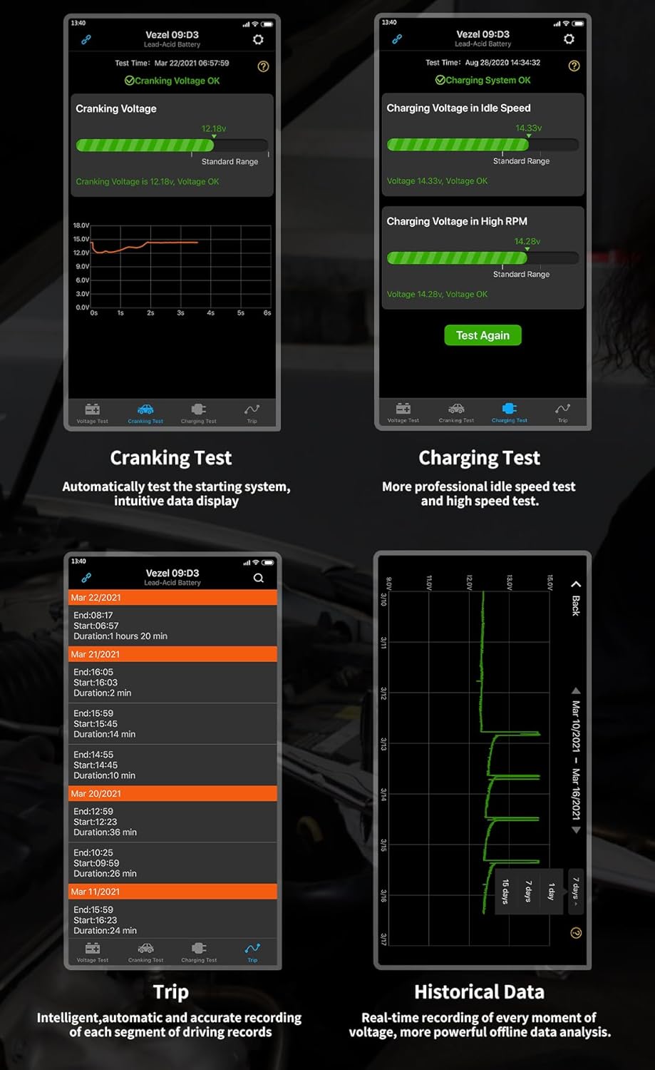 - It compatible with all 12-volt vehicle Lead acid batteries;Voltage: 9-16V With Bluetooth 4.0;