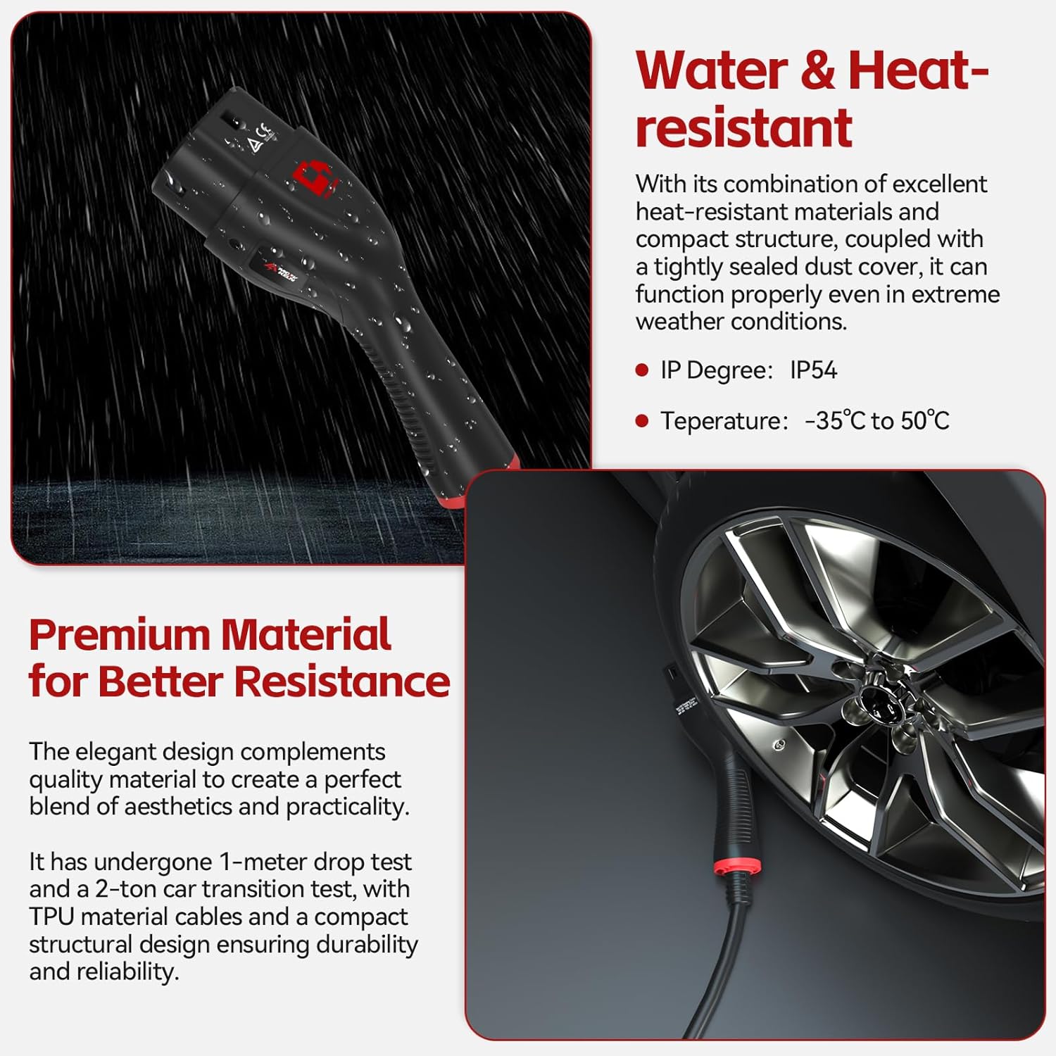 - ⚡Waterproof : With top sealing tech, the charging cable meets IP55 waterproof level,which means you can charge it even in the rain.