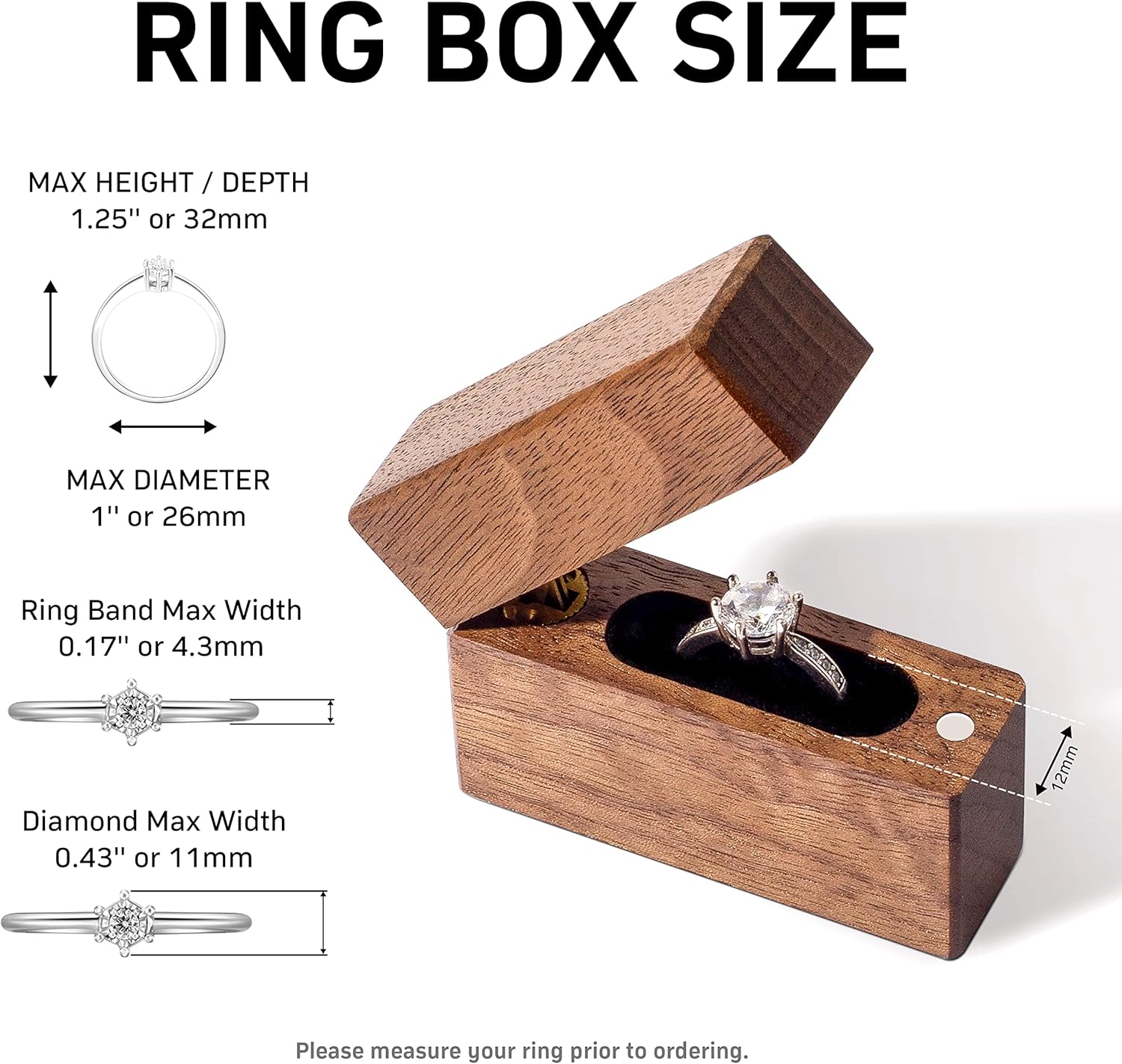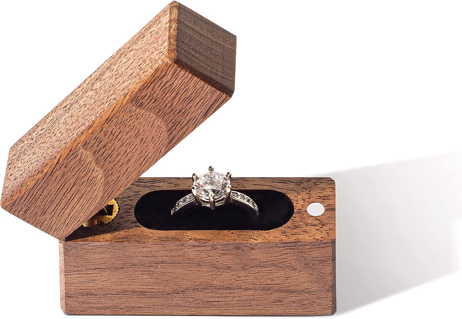 Wooden Engagement Ring Box Small Slim Flat Ring Case for Proposal,Wedding (Walnut Wood)